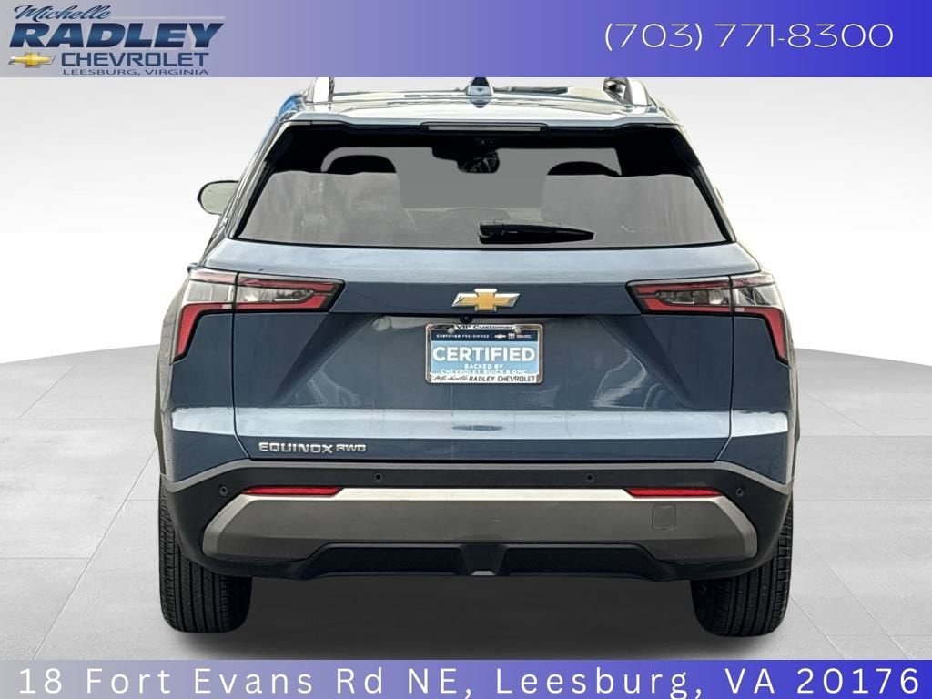 Experience the Versatility and Sophistication of the 2025 Chevrolet Equinox LTThis 2025 Chevrolet Equinox LT is a remarkable blend of style, technology, and capability, making it the perfect choice for the modern driver. With its striking blue exterior, this Equinox not only turns heads but also delivers exceptional performance and a wealth of premium features. Convenience Package II Safety and Technology Package Navigation System Preferred Equipment Group 2LT 6 Speakers SiriusXM Dual-Zone Automatic Climate Control Hands-Free Power Programmable Liftgate Rear Camera Mirror Washer HD Surround Vision Traffic Sign Recognition Wireless Charging for Devices Heated Driver & Front Passenger Seats Roof RailsUnder the hood, this Equinox LT is powered by a 1.5L DOHC engine paired with an 8-speed automatic transmission and all-wheel drive, providing a smooth and responsive driving experience. With an EPA-estimated 24 city/29 highway mpg, you'll enjoy the perfect balance of power and efficiency.The interior of this Equinox LT is designed with your comfort and convenience in mind. The Evotex seating surfaces, 8-way power driver's seat, and heated front seats ensure a luxurious and personalized driving experience. The Chevrolet Infotainment 3 system with an 11.3 diagonal advanced color LCD display keeps you connected and entertained, while the Wireless Charging feature allows you to power up your devices on the go.Safety is also a top priority in the 2025 Equinox LT. This vehicle is equipped with a comprehensive suite of advanced safety features, including Rear Pedestrian Alert, Front Fog Lamps, and the impressive HD Surround Vision system, providing you with greater awareness and confidence on the road.As a Chevrolet Certified Pre-Owned vehicle, this Equinox LT has undergone a rigorous 172-point inspection and comes with a wealth of benefits, including a 12-month/12,000-mile limited warranty, a 72-month/100,000-mile powertrain limited warranty, and a 24-month/24,000-mile Certified Pre-Owned Scheduled Maintenance Plan.Please visit us at the all new MICHELLE RADLEY CHEVROLET of Leesburg at 18 Fort Evans Road NE, Leesburg, VA 20176.***GM Certified Pre-Owned vehicles have passed General Motors' rigorous 172-point inspection but will require a $1,099 surcharge to qualify for all of the certification benefits listed above.