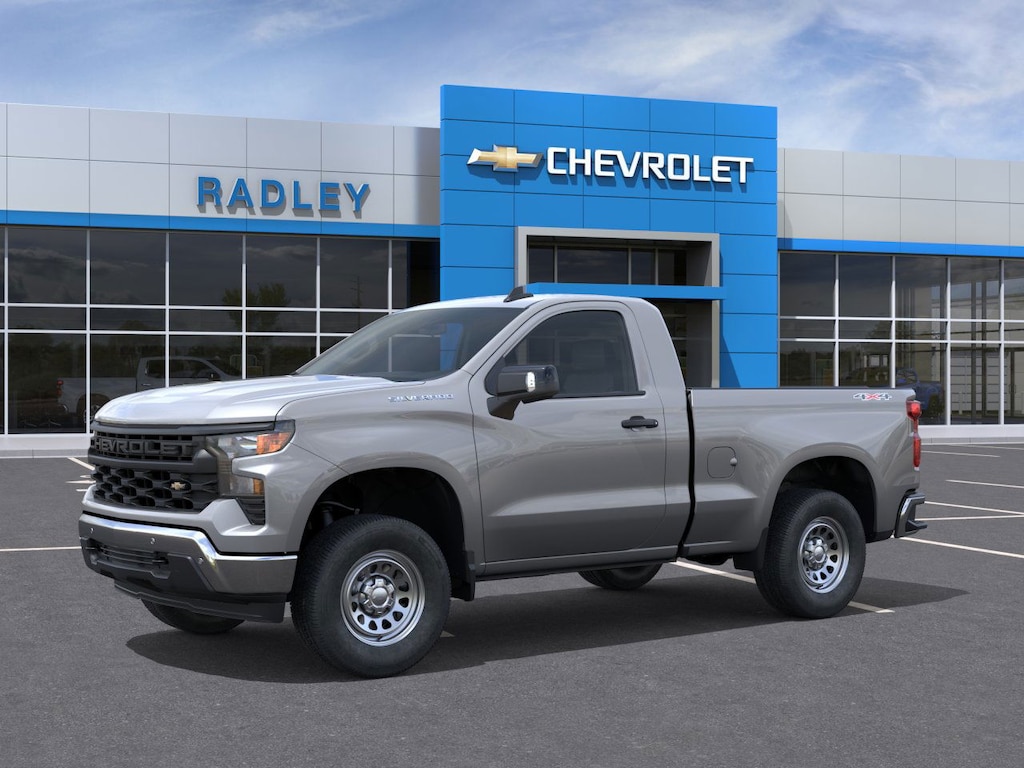 Sterling Gray Metallic 2026 Chevrolet Silverado 1500 WT 4WD 8-Speed Automatic 2.7L I4 Turbocharged DOHC 16V LEV3-SULEV30 310hp 120-Volt Bed Mounted Power Outlet, 120-Volt Interior Power Outlet, 2 Speakers, 2-Speaker Audio System, 220 Amp Alternator, 3.42 Rear Axle Ratio, 3.5 Monochromatic Display Driver Info Center, 4-Way Manual Driver Seat Adjuster, 4-Wheel Disc Brakes, 40/20/40 Front Split Bench Seat, ABS brakes, Air Conditioning, Apple CarPlay/Android Auto, Auto High-beam Headlights, Automatic Emergency Braking, Black (Semi-Gloss) Front Bumper, Black (Semi-Gloss) Rear Bumper, Bluetooth® For Phone, Brake assist, Chevytec Spray-on Black Bedliner, Compass, Deep-Tinted Glass, Delay-off headlights, Driver door bin, Dual front impact airbags, Dual front side impact airbags, Electric Rear-Window Defogger, Electronic Cruise Control, Electronic Stability Control, Emergency communication system: OnStar, EZ Lift Power Lock and Release Tailgate, Following Distance Indicator, Forward Collision Alert, Front anti-roll bar, Front Center Armrest w/Storage, Front Chrome Bumper, Front Frame-Mounted Black Recovery Hooks, Front License Plate Kit, Front Pedestrian Braking, Front reading lights, Front wheel independent suspension, Fully automatic headlights, HD Rear Vision Camera, Heated door mirrors, Heated Power-Adjustable Outside Mirrors, High Gloss Black Mirror Caps, Hitch Guidance, Illuminated entry, Inside Rearview Mirror with Tilt, Integrated Trailer Brake Controller, IntelliBeam Automatic High Beam on/Off, Lane Change Alert with Side Blind Zone Alert, Lane Keep Assist with Lane Departure Warning, Locking Tailgate, Low tire pressure warning, Manual Tailgate Function with No EZ Lift, Manual Tilt Wheel Steering Column, Occupant sensing airbag, OnStar Services Capable, Outside temperature display, Overhead airbag, Overhead console, Panic alarm, Passenger door bin, Passenger vanity mirror, Perimeter Lighting, Power door mirrors, Power Front Windows with Driver Express Up/Down, Power Front Windows with Passenger Express Down, Power steering, Power windows, Preferred Equipment Group 1WT, Premium audio system: Chevrolet Infotainment 3, Radio data system, Radio: Chevrolet Infotainment 3 System, Rear Chrome Bumper, Rear Cross Traffic Braking, Rear Pedestrian Alert, Rear reading lights, Rear step bumper, Remote Keyless Entry, Remote keyless entry, Rubberized-Vinyl Floor Covering, SiriusXM Delete, Solar Absorbing Tinted Glass, Speed control, Speed-sensing steering, Standard Suspension Package, Standard Tailgate, Tachometer, Teen Driver, Tilt steering wheel, Tire Pressure Monitoring System, Traction control, Trailering Package, Trip computer, Ultrasonic Front and Rear Park Assist, Variably intermittent wipers, Vinyl Seat Trim, Voltmeter, Wheels: 17 x 8 Ultra Silver Painted Steel, Wi-Fi Hot Spot Capable, WT Convenience Package, WT Safety Package, WT Value Package.